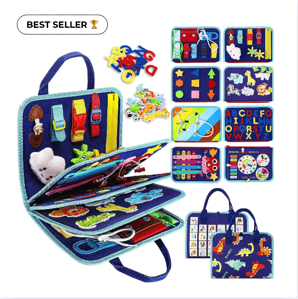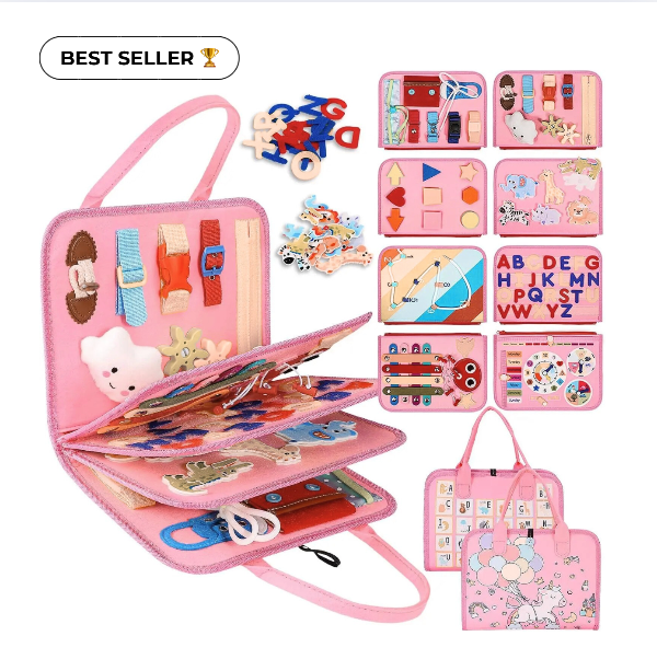 The Montessori Educational Book is specially designed to stimulate your child’s fine motor skills, concentration, and independence. By practicing skills like buttoning, zipping, tying shoelaces, and recognizing shapes in a playful way, your child learns essential abilities that are indispensable in daily life.